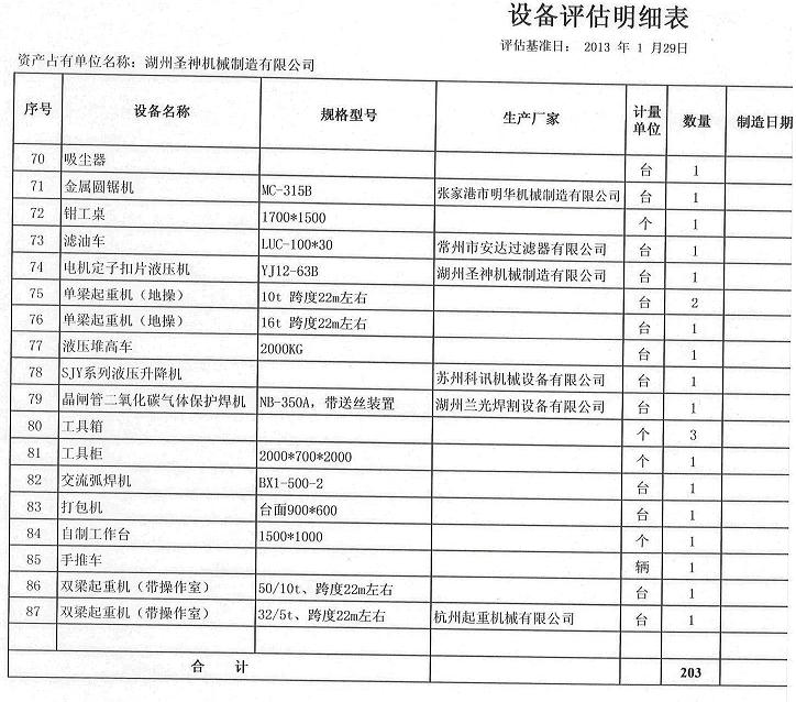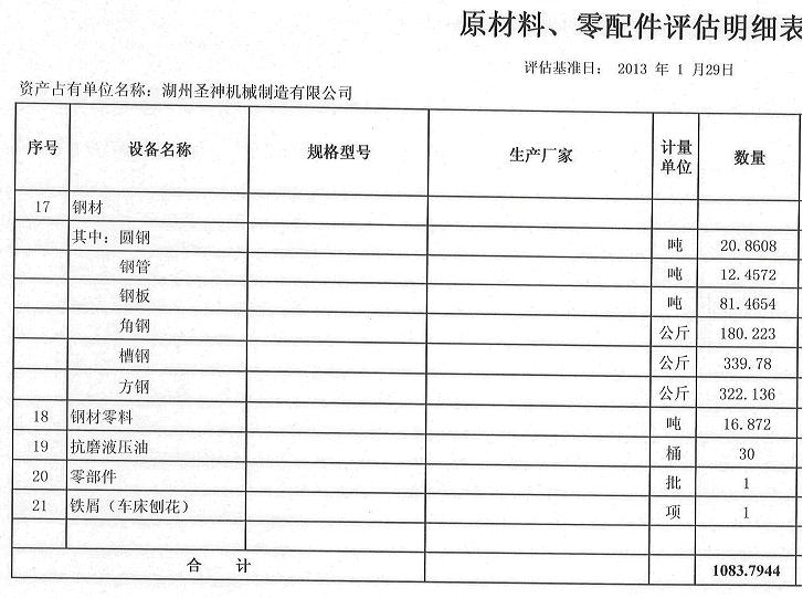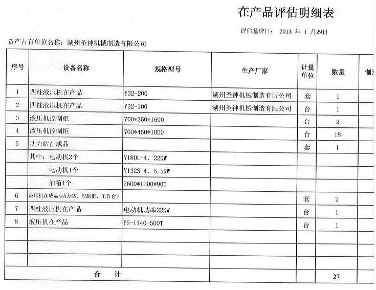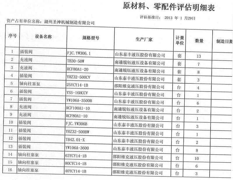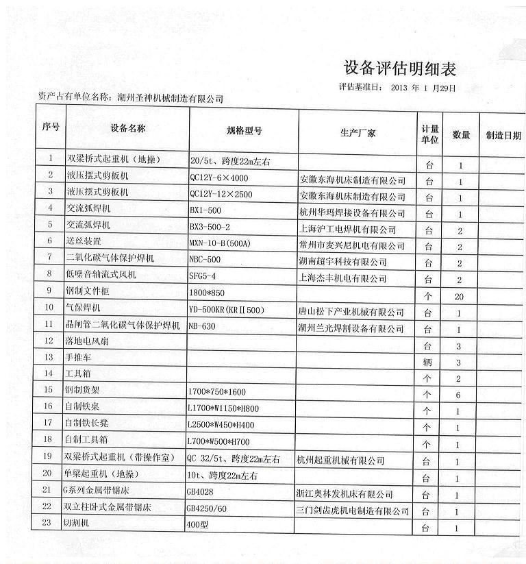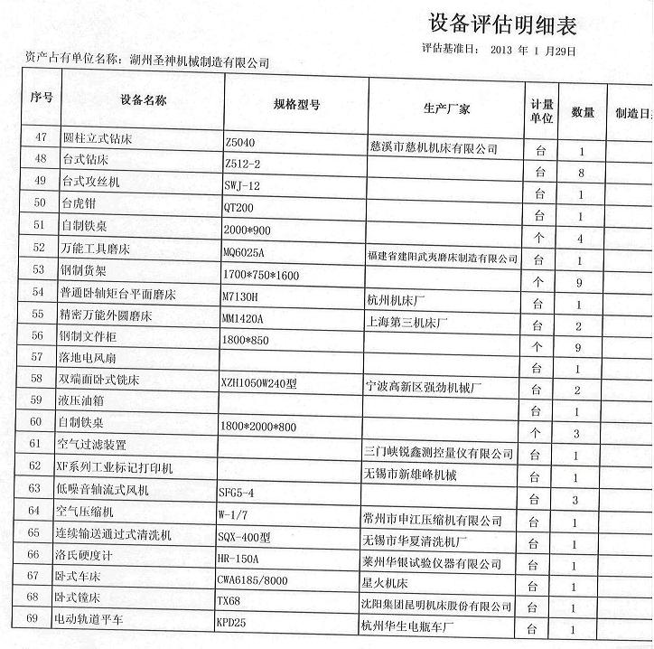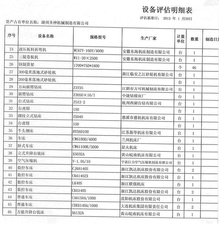 2、被執(zhí)行人湖州圣神機械制造有限公司所有的位于該公司廠房內(nèi)的機器 設(shè)備(車床、刨床、磨床、銑床、鉆床、鋸床、氣保焊機、起重機)、液壓機在產(chǎn)品、零部件、原材料(鋼材)等財產(chǎn)。起拍價340萬元(有保留價)。