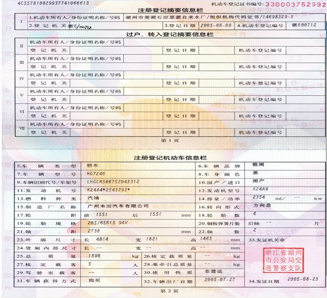 浙EUY826本田雅閣轎車一輛拍賣公告