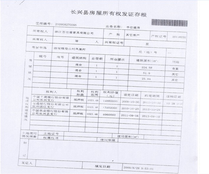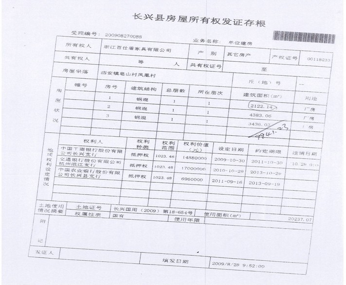 1、長興縣泗安鎮鳳凰村的廠房[建筑面積11023.48㎡]和工業出讓土地使用權[面積20237㎡]、機器設備和材料,起拍價:2200萬元。