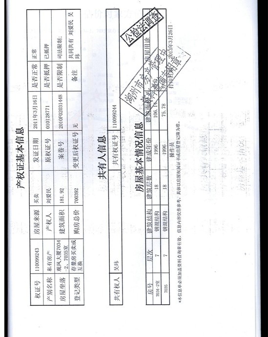 1、湖州市觀鳳大廈7034—2、7035室辦公用房181.92㎡,起拍價90萬元,(被執行人劉愛民、吳瑋、劉愛東、吳根英和湖州中弘紡織有限公司有競買權)。