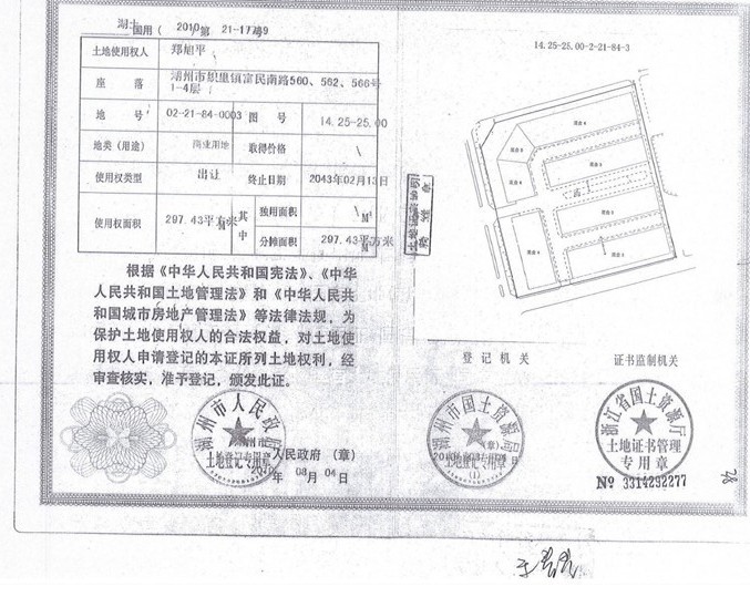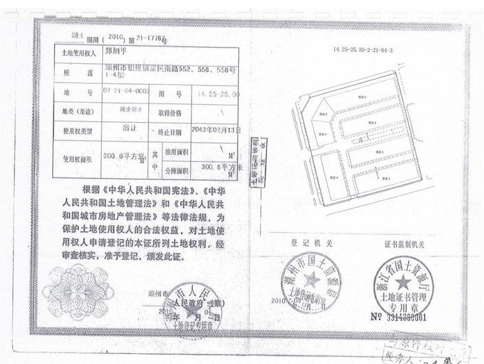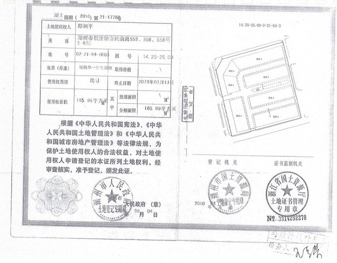 三、2013年12月11日由委托人中止拍賣的湖州市織里鎮(zhèn)富民南路540、542、546、548、550、552、556、558、560、562、566號(hào)及織里鎮(zhèn)東湖路2-1、2-3號(hào)的房屋(3396.06㎡)及土地使用權(quán)(1727.58㎡),于2013年12月24日10時(shí)在湖州市鳳凰路627號(hào)拍賣廳恢復(fù)拍賣,起拍價(jià)1850萬元。(被執(zhí)行人鄭旭平、高春華有競買權(quán))
