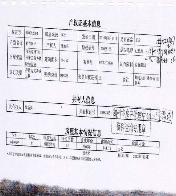 二、展示、報名時間和地點:自公告之日起至2014年1月23日16時止(以銀行轉賬入賬為準)。有意競買者須持有效證件,將標的起拍價10℅的競買保證金交入:戶名:湖州昆侖拍賣有限公司,開戶行:中國工商銀行吳興支行,賬號:1205 2302 1904 9127827(法院監管賬戶),到本公司辦理相關報名登記手續。