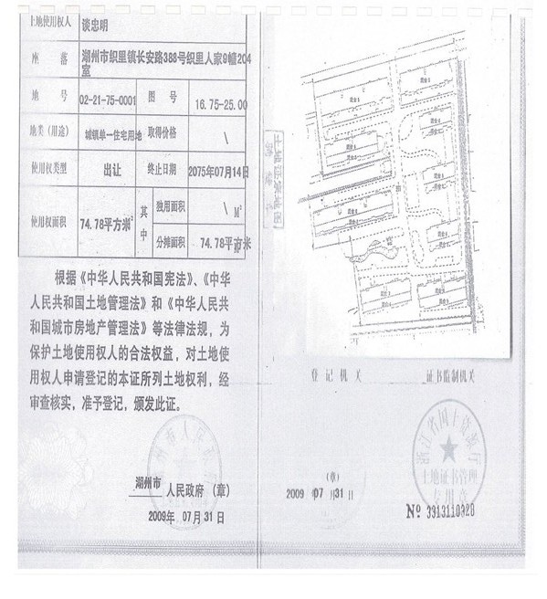 二、展示、報(bào)名時(shí)間和地點(diǎn):自公告之日起至2014年2月17日16時(shí)止(以銀行轉(zhuǎn)賬入賬為準(zhǔn))。有意競(jìng)買者須持有效證件,將標(biāo)的起拍價(jià)10℅的競(jìng)買保證金交入:戶名:湖州昆侖拍賣有限公司,開戶行:中國(guó)工商銀行吳興支行,賬號(hào):1205 2302 1904 9127827(法院監(jiān)管賬戶),到本公司辦理相關(guān)報(bào)名登記手續(xù)。