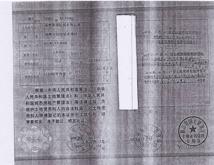 2、被執行人莫美江在湖州吳興農村合作銀行中持有的股金178680元及收益,起拍價53萬元。(湖州吳興農村合作銀行的股東具有優先購買權)