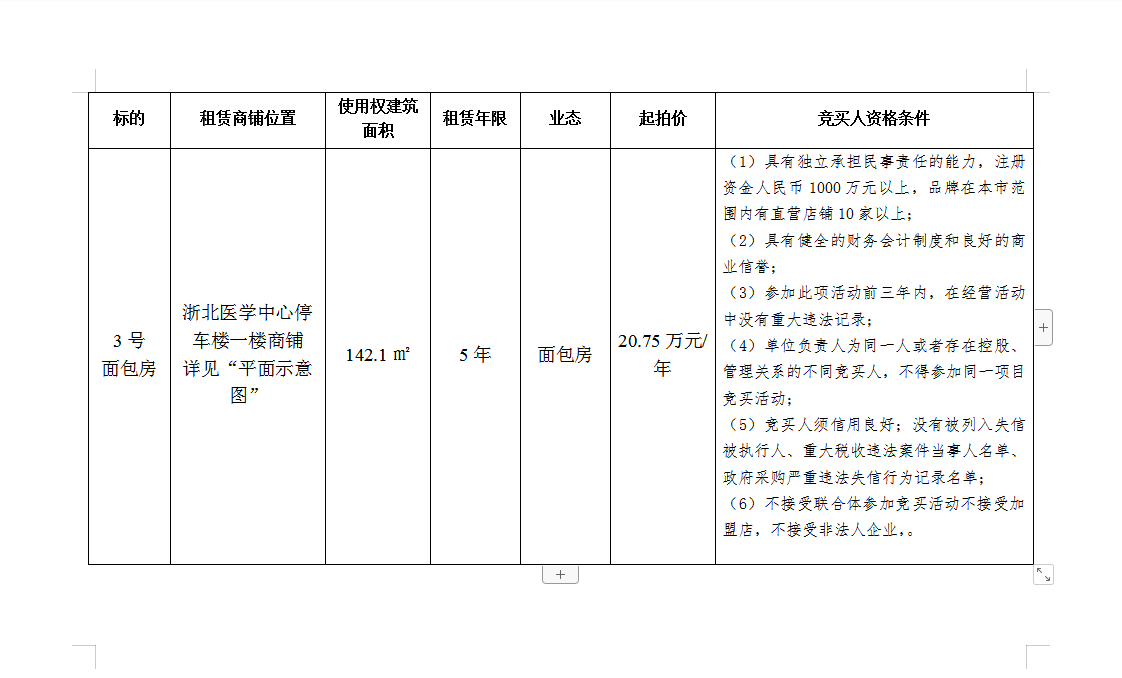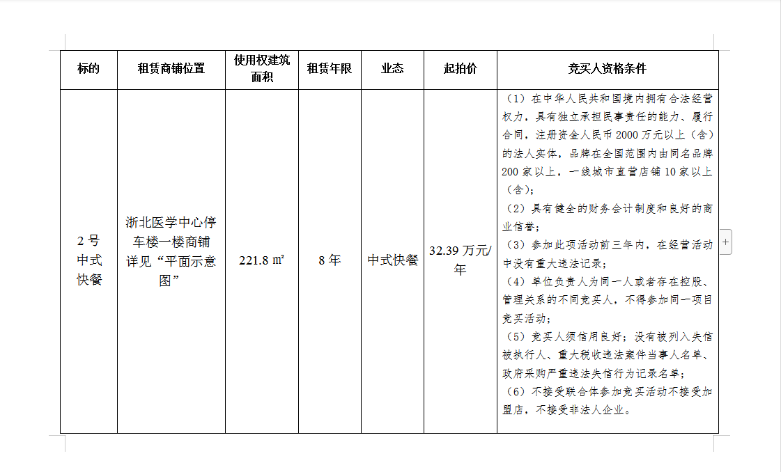 三環北路浙北醫學中心(湖州中心醫院)停車一樓商業房產約635.5平方米的商鋪租賃使用權